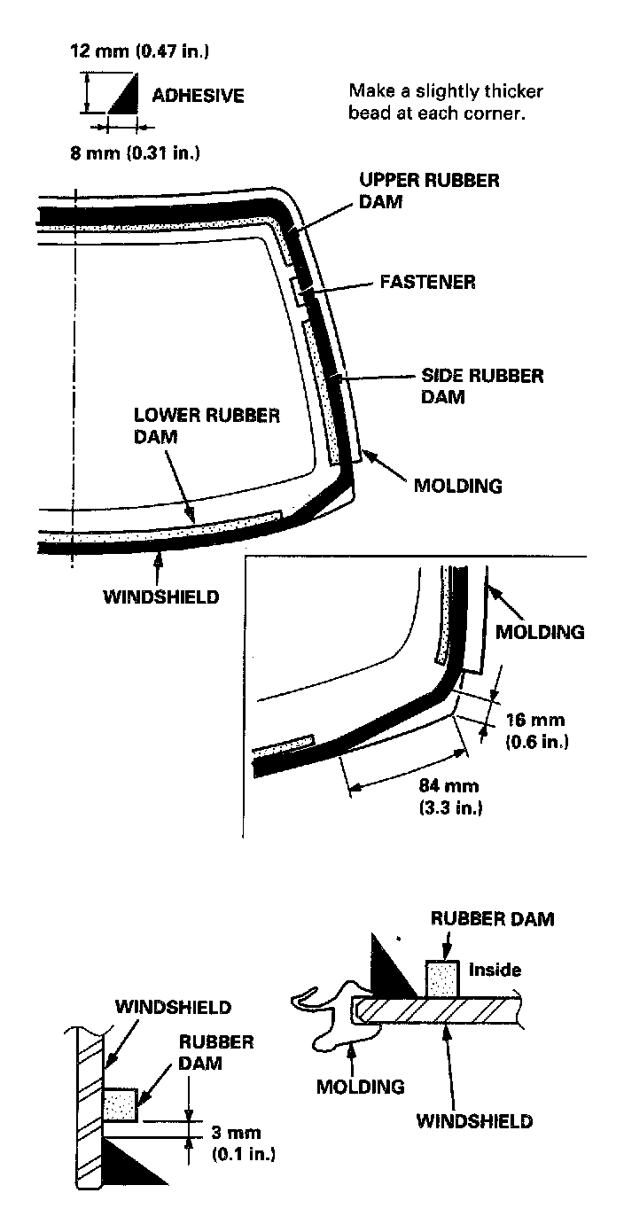 - Never touch the primed surfaces with your hands. If you do, the adhesive may not bond to the windshield properly, causing a leak after the windshield is installed.
