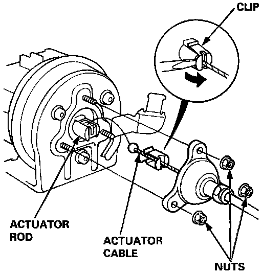 4. Disconnect the vacuum hose, then remove the three nuts from the actuator.