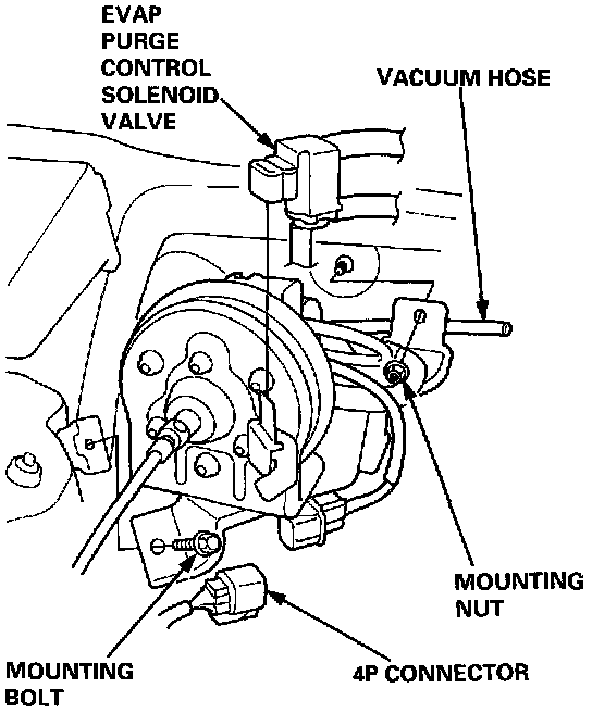 3. Remove the EVAP purge control solenoid valve from the actuator bracket.