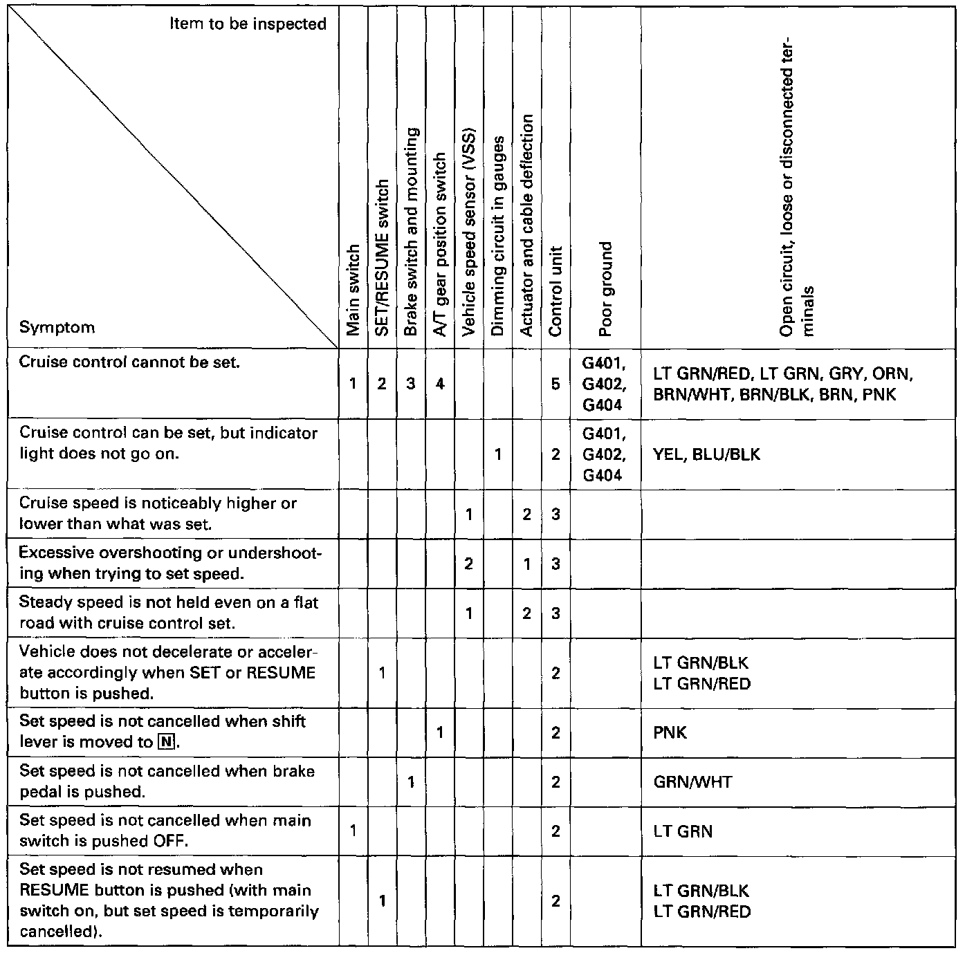 Cruise Control-Troubleshooting: