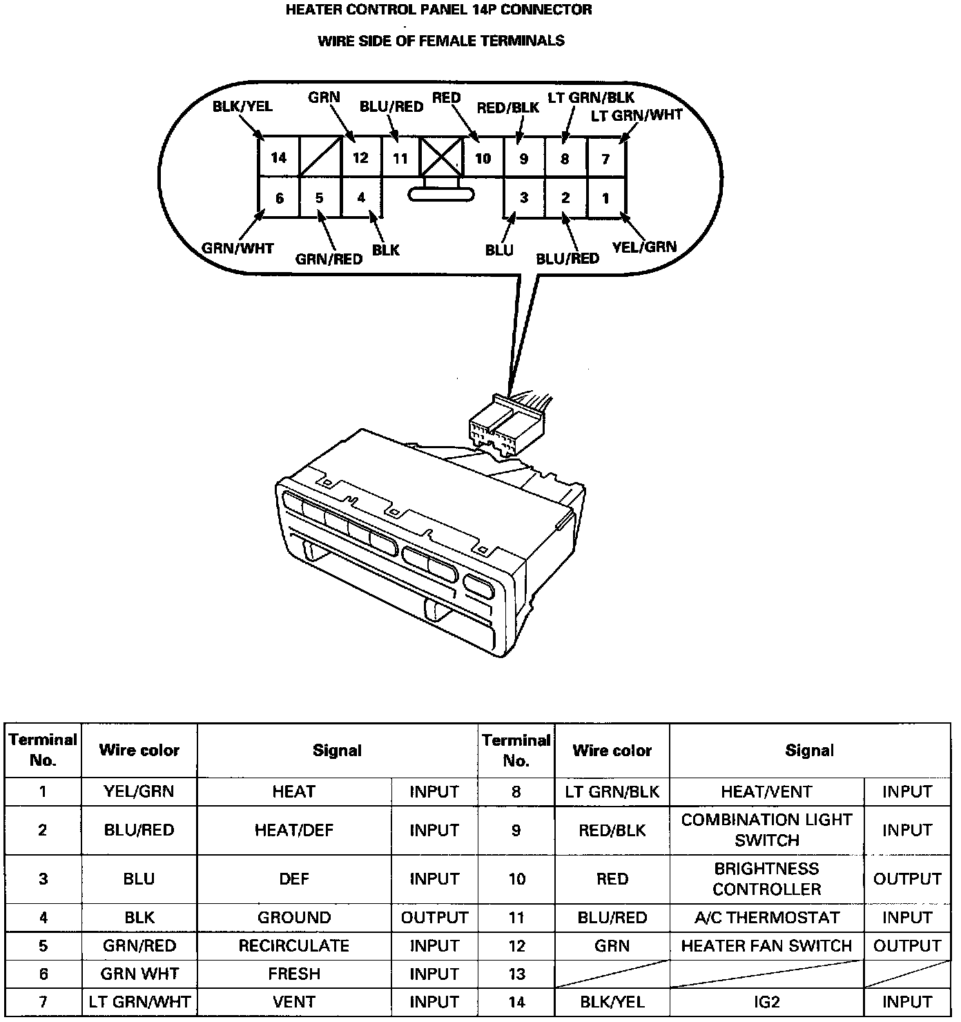 Heater Control Panel Input/Output Signals:
