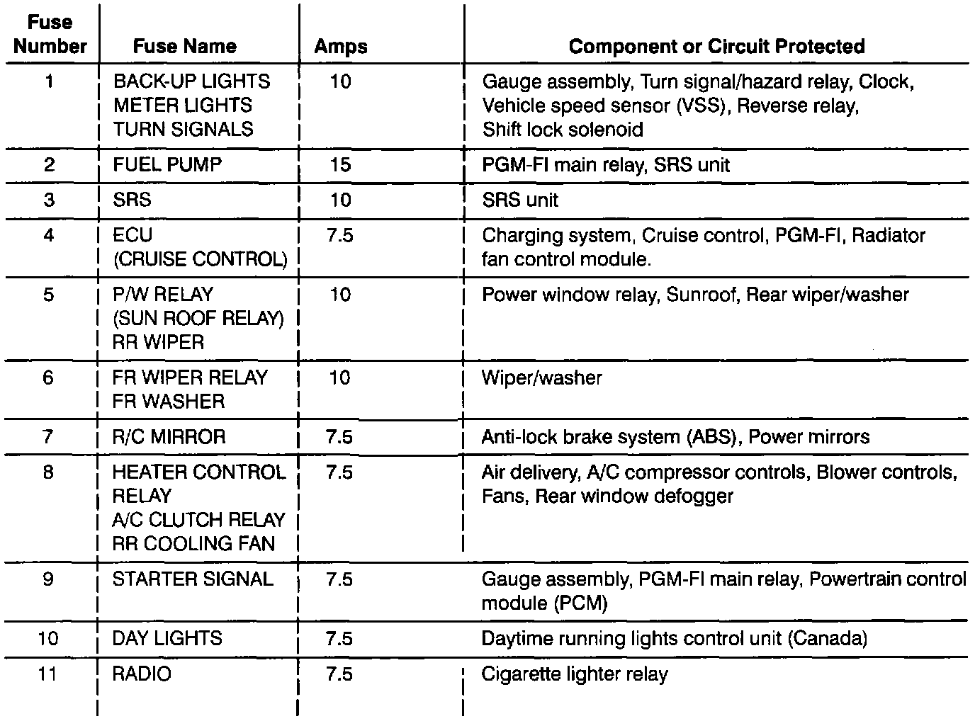 Fuse/Relay Information (Under-dash Fuse/Relay Box) (Part 1 Of 2):