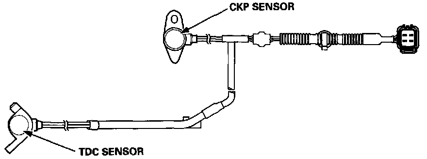 The CKP Sensor determines timing for fuel injection and ignition of each cylinder and also detects engine speed. The TDC Sensor determines ignition timing at start-up (cranking) and when crank angle is abnormal.