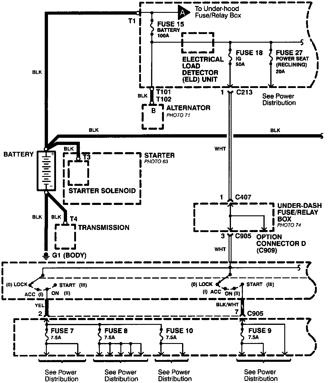 Power Distribution schematics show how power is supplied from the positive battery terminal to various circuits in the car. Refer to the power distribution section to get a more detailed picture of how power is supplied to the circuit you're working on.Power Distribution Schematics ( From Battery To Ignition Switch, Fuses And Relays: