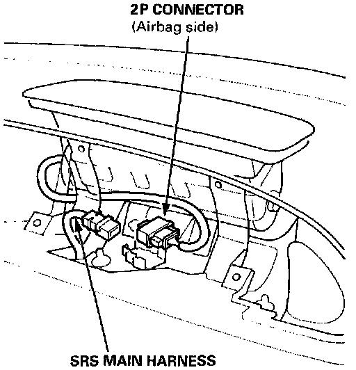 ^ Disconnect the front passenger's 2P connector from the SRS main harness.