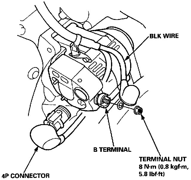 5. Remove the terminal nut and BLK wire from the B terminal.