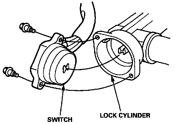 5. Remove the two screws from the steering lock cylinder, and replace the electrical switch.