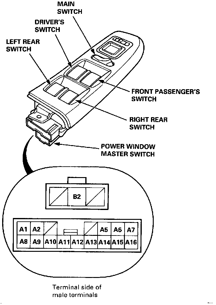 1. Remove the master switch.Power Windows-Master Switch Test: