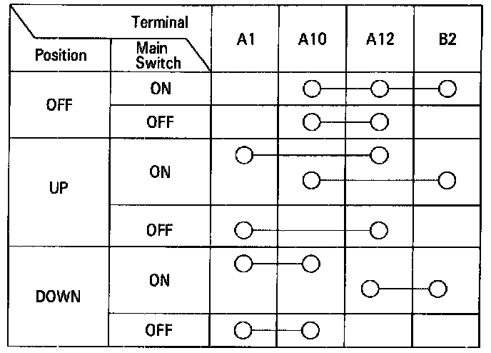 The driver's switch is combined with the control unit so you cannot isolate the switch to test it. Instead, run the master switch input test procedures at terminals A1, A2, A5, A6, A7, A8, A14, A16, and B2. If the tests are normal, the driver's switch must be faulty.