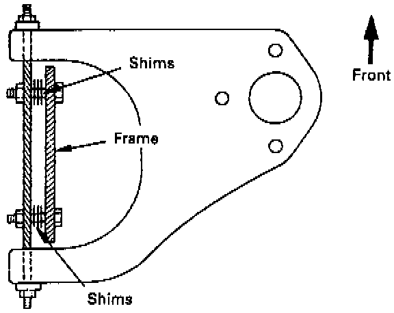 NOTE: The caster angle can be adjusted by means of the caster shims installed between the chassis frame and fulcrum pins.