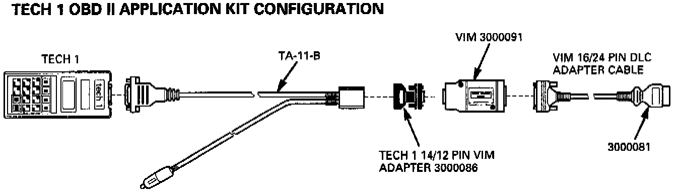 For the TECH 1 to interpret the Class 2 Data Bus used by OBD II, it is necessary to use the TECH 1 application kit part #7000041 or #7000041 A.