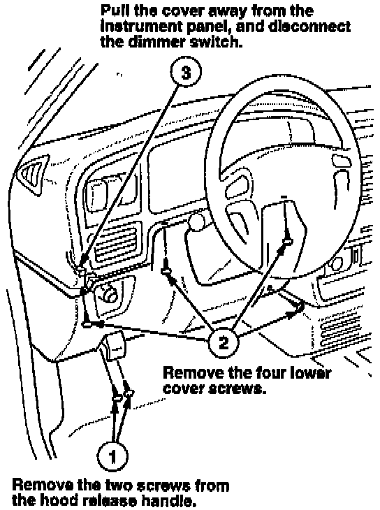 13. Reinstall the steering column covers in the reverse order of removal (refer to step 4). Make sure you position the wire harnesses the same as before they were removed.