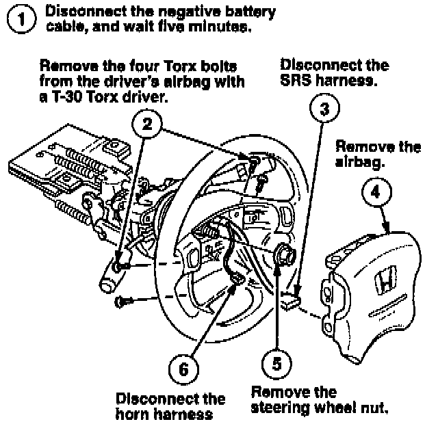 To prevent accidental airbag deployment, turn the ignition switch OFF, disconnect the negative battery cable, and wait at least five minutes before disconnecting any SRS connectors. See 1995.5 or later Passport Service Manual for airbag handling instructions.