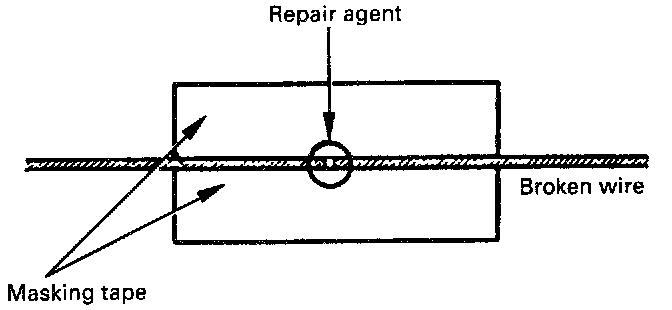 REPAIR OF BROKEN DEFOGGER HEAT WIRE1. Clean broken wire tips with white gasoline.