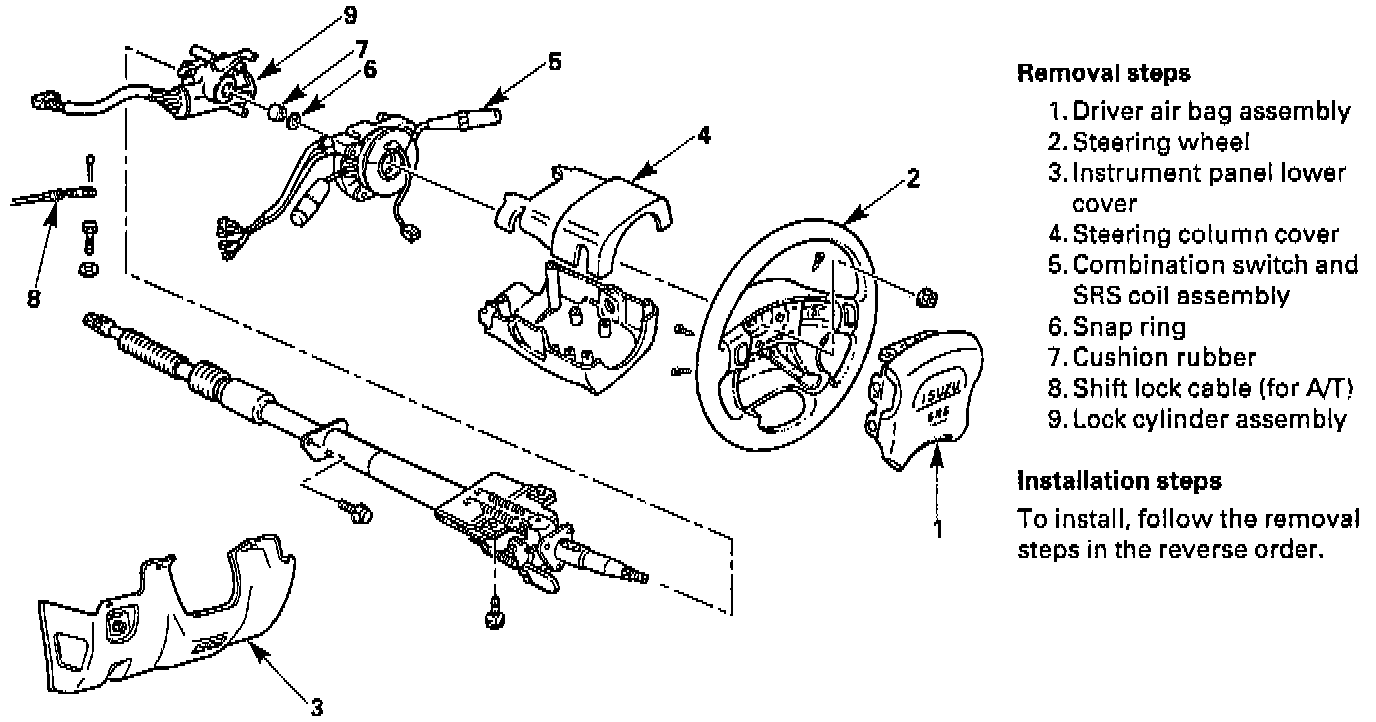 NOTE: The SRS coil is a part of the combination switch assembly, which can not be replaced separately. Therefore, be sure not to remove the SRS coil from the combination switch assembly.