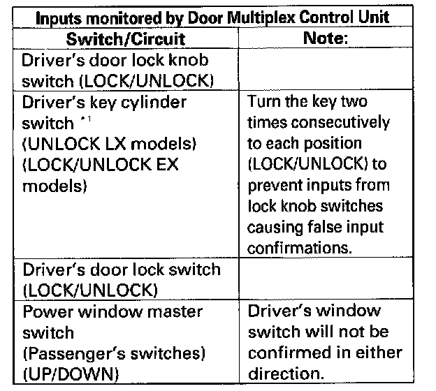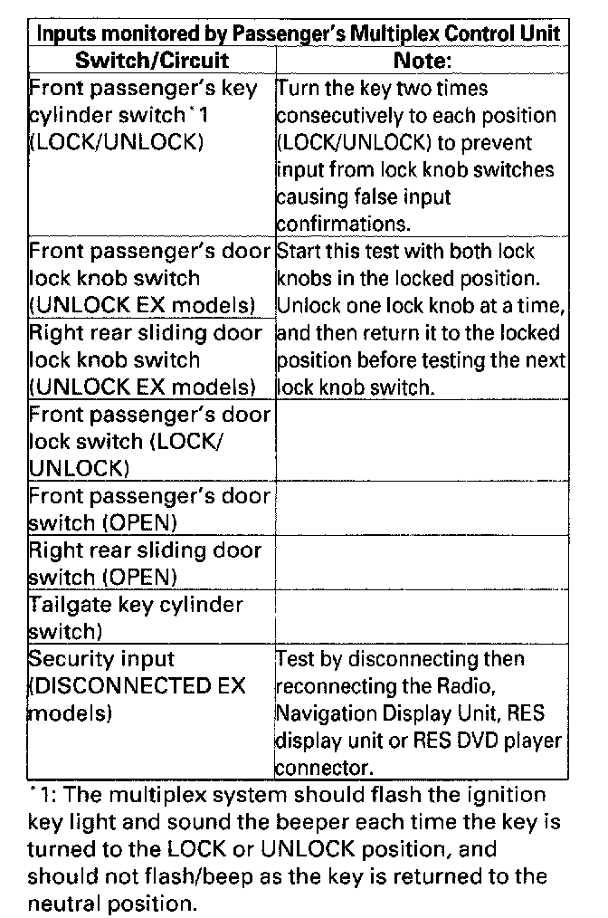 Mode 2 is an easy way to identify a problem circuit without having to test circuit with a DVOM Mode 2 will confirm a switch/circuit is working by flashing the ignition key light and sounding the beeper as the circuit is used. The multiplex control system will confirm inputs as they are grounded except for the following circuits.