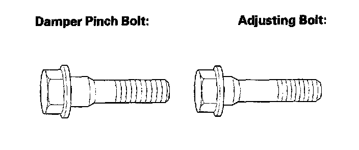 NOTE: The camber angle can be adjusted up to ± 30' (center of tolerance) by replacing one damper pinch bolt with the adjusting bolt. The camber angle can be adjusted up to 1°00' by replacing both damper pinch bolts with the adjusting bolts.