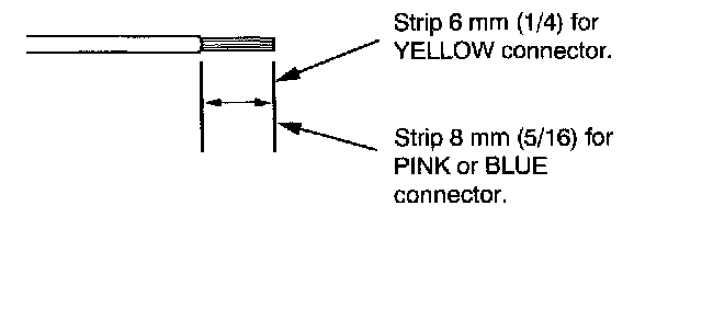 7. If you are using a yellow splice connector, strip about 6 mm (1/4 inch) of insulation off the ends of both wires. If you are using a pink or blue splice connector, strip off about 8 mm (5/16 inch) of insulation.