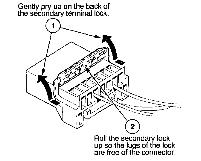 - If it has a secondary terminal lock, go to Connectors With a Secondary Lock. A secondary lock, found on most connectors on some models, is an additional locking device on the connector housing as a backup for the primary lock on the terminal.