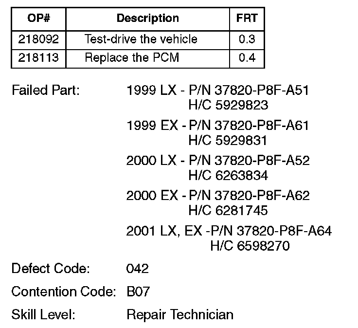 Replace the PCM with the appropriate countermeasured part. The countermeasured PCM reduces the probability of engine resonance.