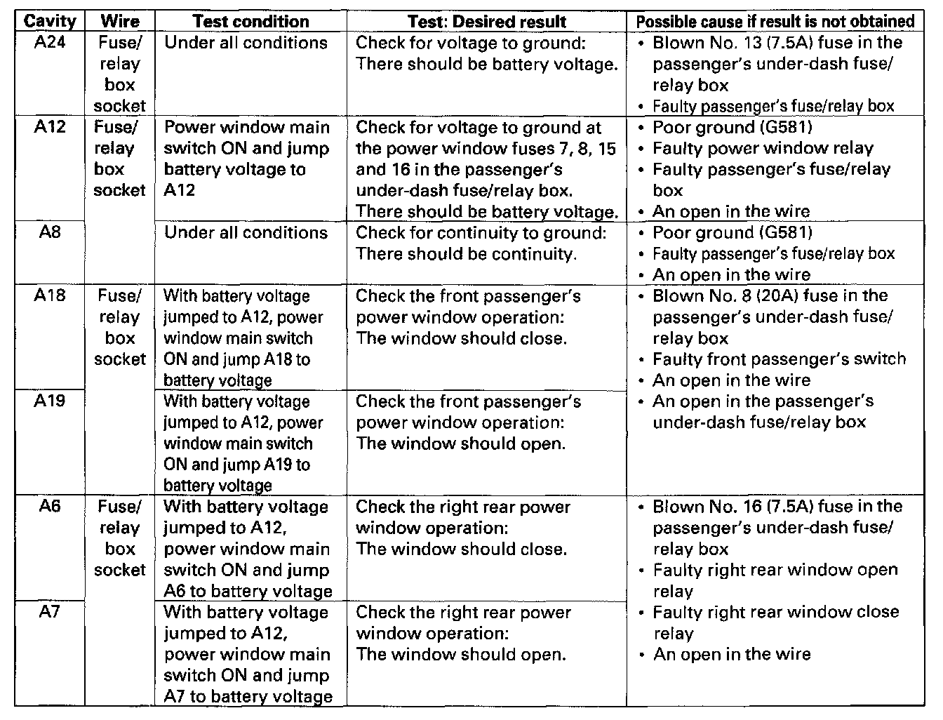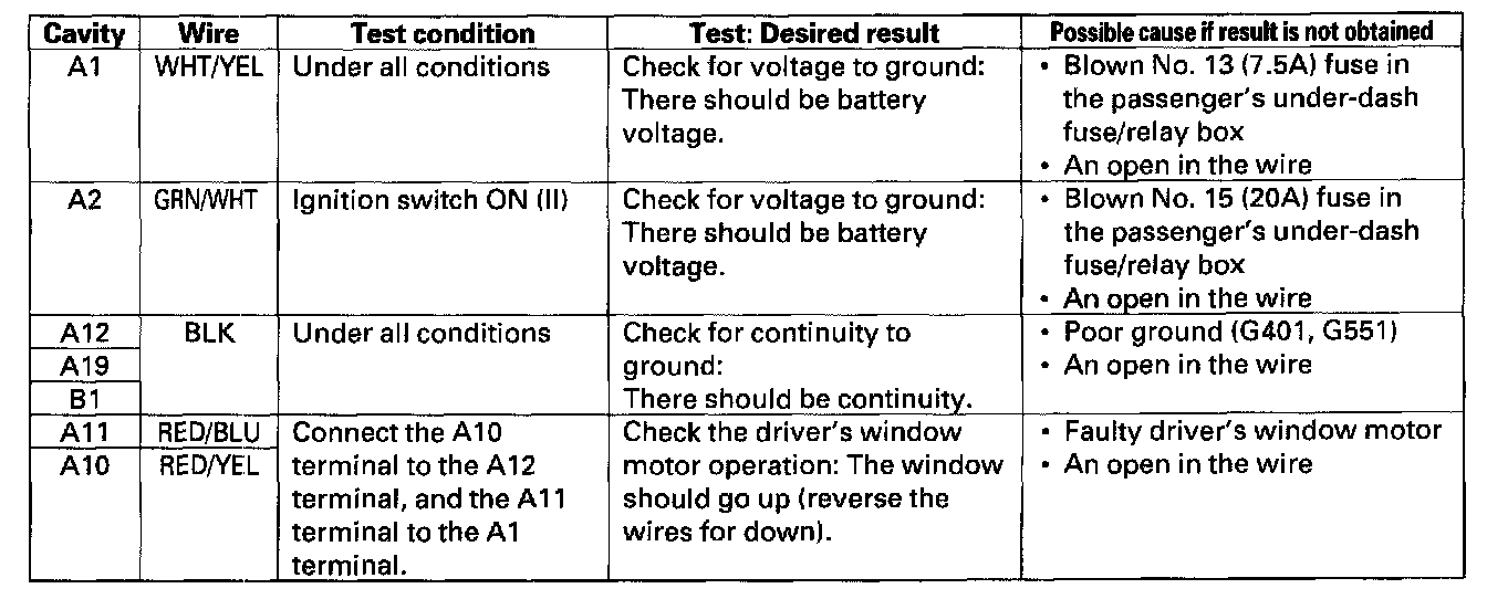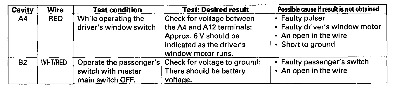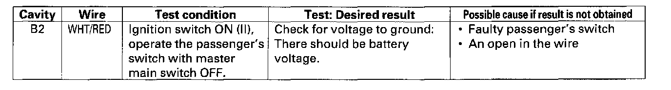 Control Unit Input Test1. Before testing the power window control functions, troubleshoot the multiplex control system.