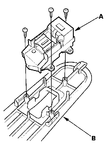 2. Remove the three mounting screws, then remove the passenger's window switch (A) from the panel (B).