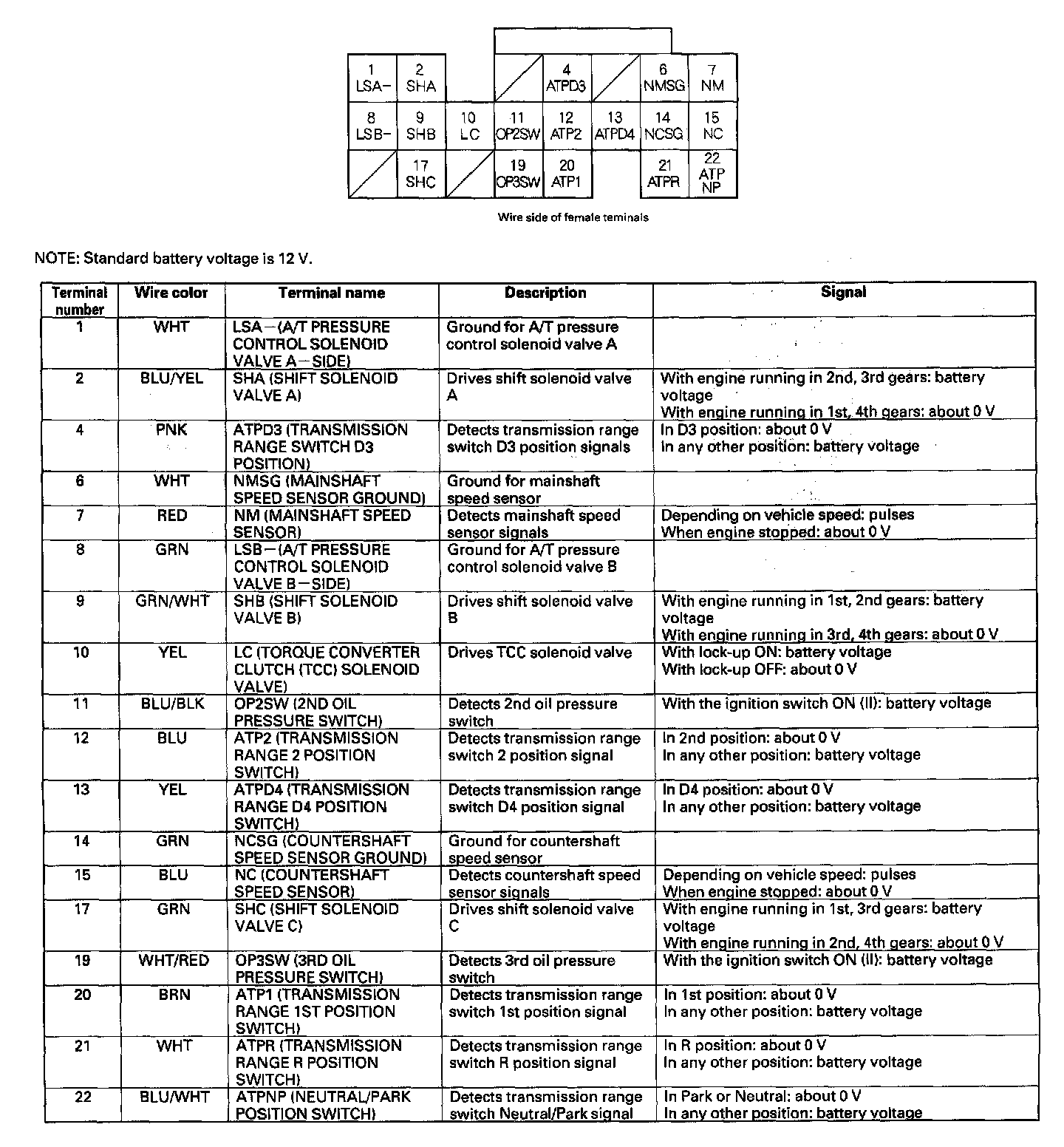 PCM Inputs Outputs At Connector D (17P) (With ABS/TCS):
