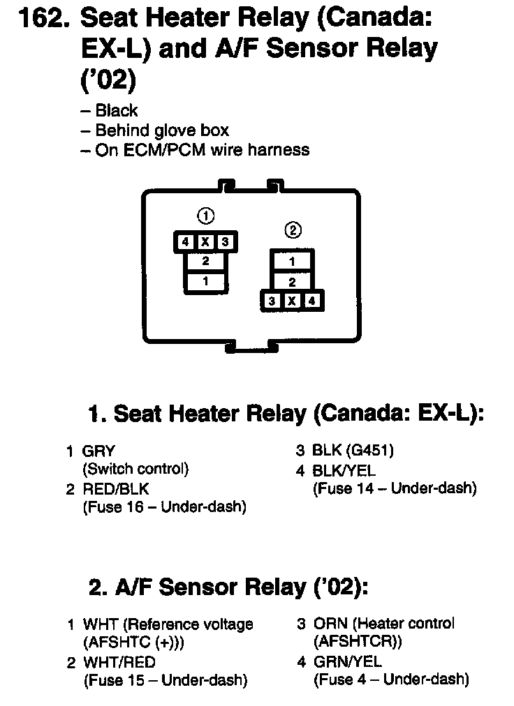 Seat Heater Relay (Canada: EX-L) And A/F Sensor Relay (02):
