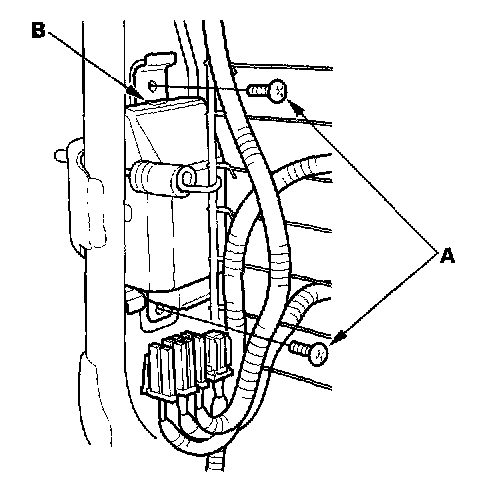 1. Place the new OPDS unit on the seat-back frame. Tighten the two screws (A), and connect the OPDS unit harness 8P connector and sensor connectors to the OPDS unit.