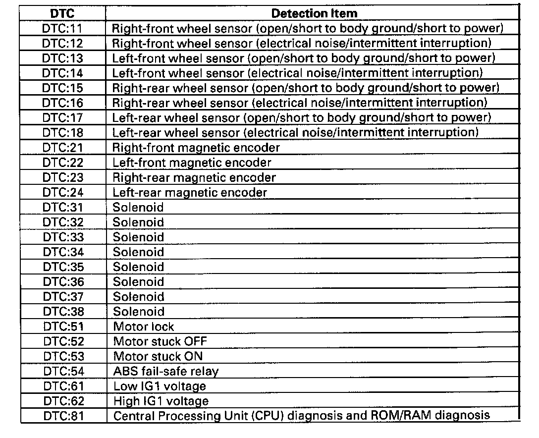 DTC List - Antilock Brake System