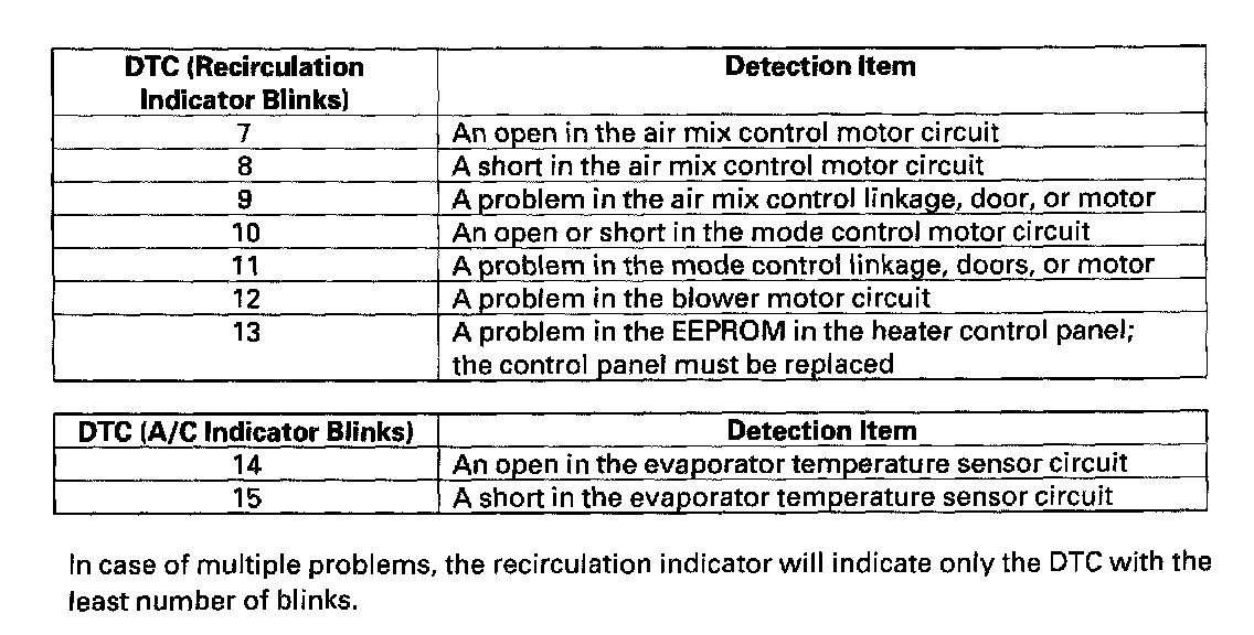 DTC List - Heating/Air Conditioning
