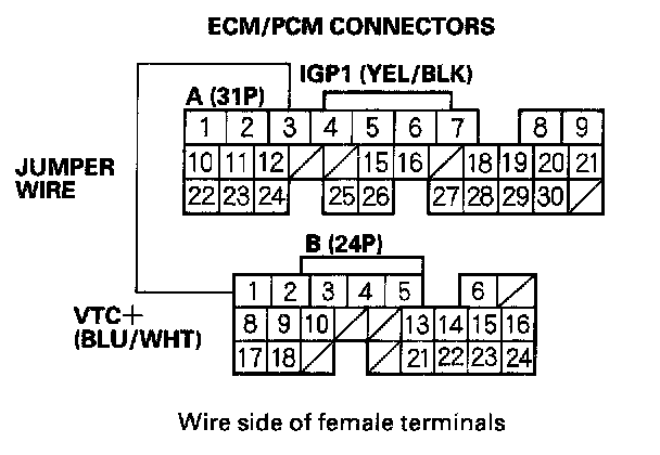 13. Connect ECM/PCM connector terminals A3 and B1 with a jumper wire momentarily.