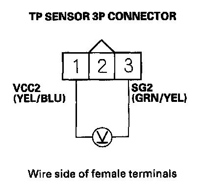 6. Measure voltage between TP sensor 3P connector terminals No. 1 and No. 3.