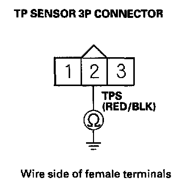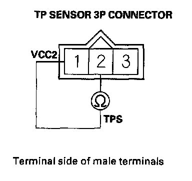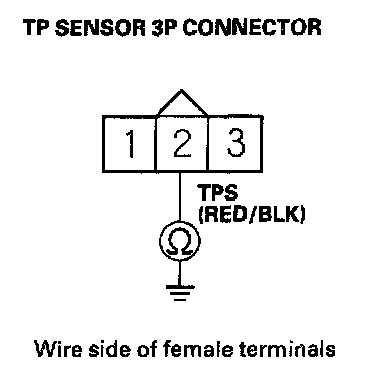 8. At the sensor side, measure resistance between TP sensor 3P connector terminals No. 2 and No. 3 with the throttle fully closed.