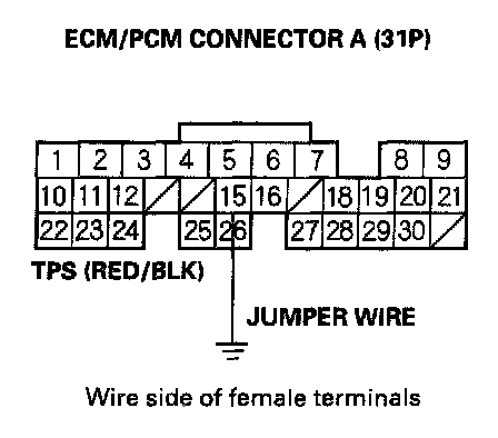 12. Connect ECM/PCM connector terminal A15 to body ground with a jumper wire.