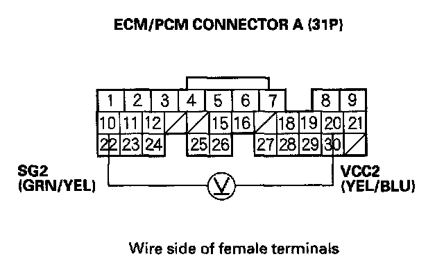 DTC P0122: TP Sensor Circuit Low Voltage1. Turn the ignition switch ON (II).