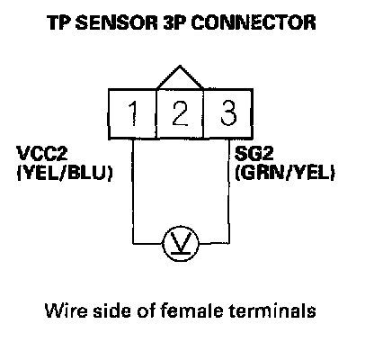 DTC P0123: TP Sensor Circuit High Voltage1. Turn the ignition switch ON (II).