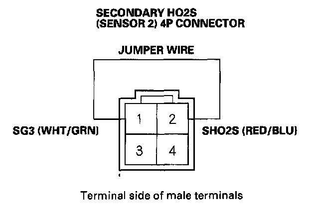 6. Connect Secondary HO2S (Sensor 2) 4P connector terminals No. 1 and No. 2 with a jumper wire.