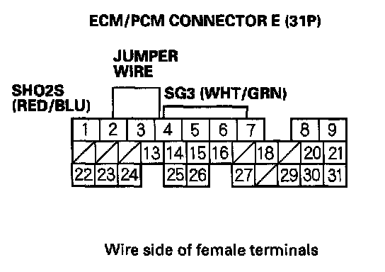 10. Connect ECM/PCM connector terminals E2 and E4 with a jumper wire.