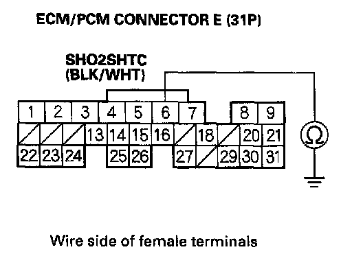 12. Check for continuity between ECM/PCM connector terminal E6 and body ground.