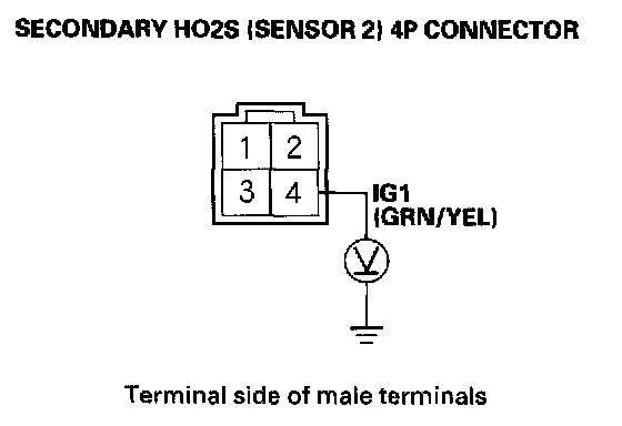 9. Measure voltage between secondary HO2S 4P connector terminals No. 3 and No. 4.