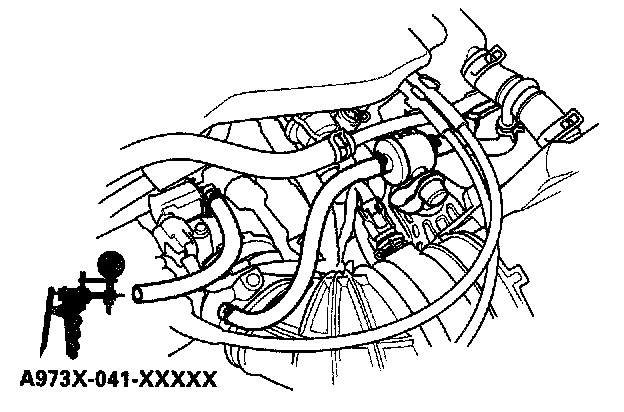 4. With a vacuum pump, apply vacuum to the evaporative emission (EVAP) canister purge valve (A) from the evaporative emission (EVAP) canister side.