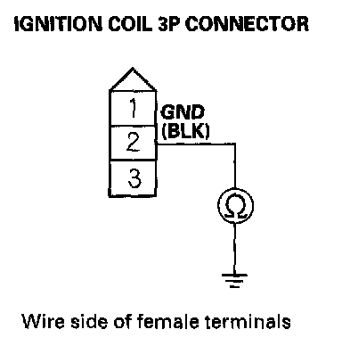 24. Check for continuity between ignition coil 3P connector terminal No. 2 and body ground.