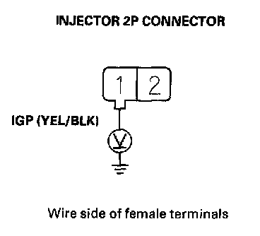45. Measure voltage between injector 2P connector terminal No. 1 and body ground.