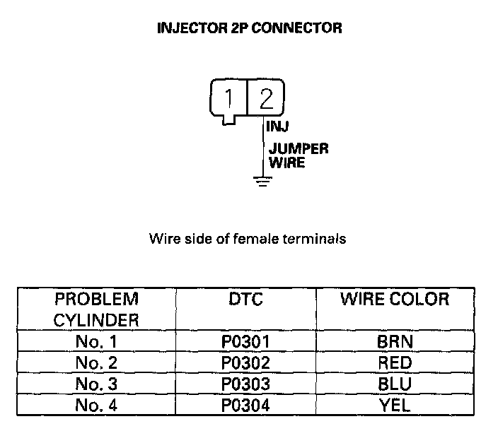 43. Disconnect the injector 2P connector from the problem cylinder.