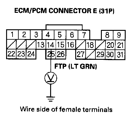 5. Monitor FTP sensor voltage with the Honda PGM Tester, or measure voltage between body ground and ECM/PCM connector terminal E14.
