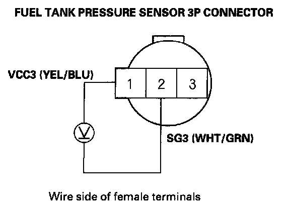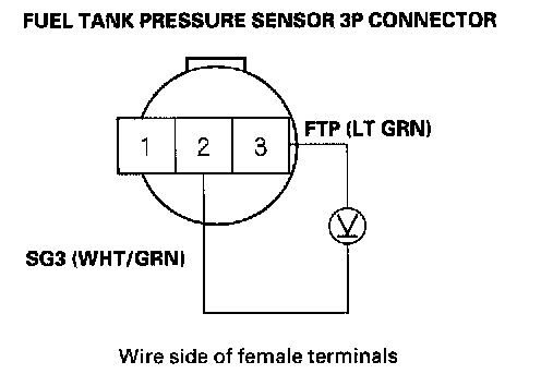11. Measure voltage between FTP sensor 3P connector terminals No. 2 and No. 3.