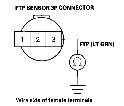 10. Measure voltage between FTP sensor 3P connector terminals No. 1 and No. 2.
