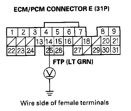 5. Monitor FTP sensor voltage with the Honda PGM Tester, or measure voltage between body ground and ECM/PCM connector terminal E14.