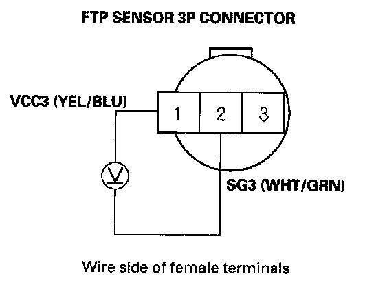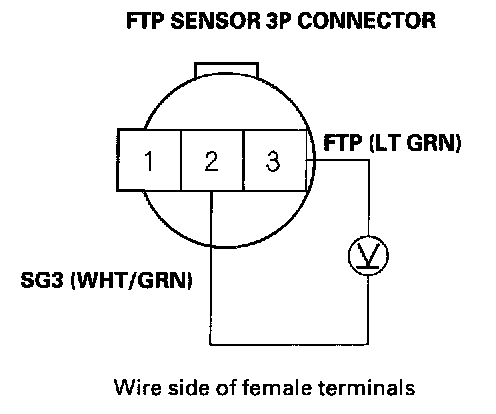 11. Measure voltage between FTP sensor 3P connector terminals No. 2 and No. 3.